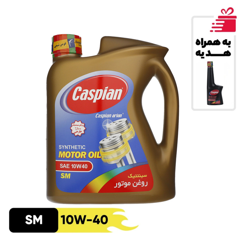 روغن موتور خودرو کاسپین مدل 10W-40 SM حجم 4 لیتر به همراه انژکتور شوی خودرو بنزینی کاسپین مدل Advanced Formula حجم 230 میلیلیتر