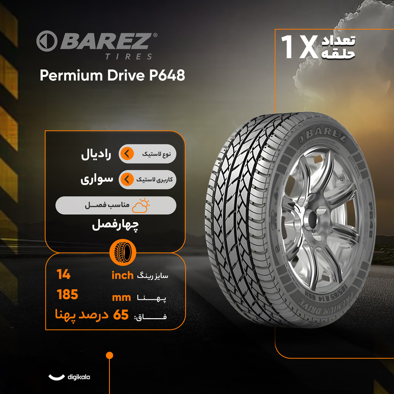 لاستیک خودرو بارز مدل Permium Drive P648 سایز 14 / 65 / 185 میلی‌متر تولید سال 2025 - 1 حلقه