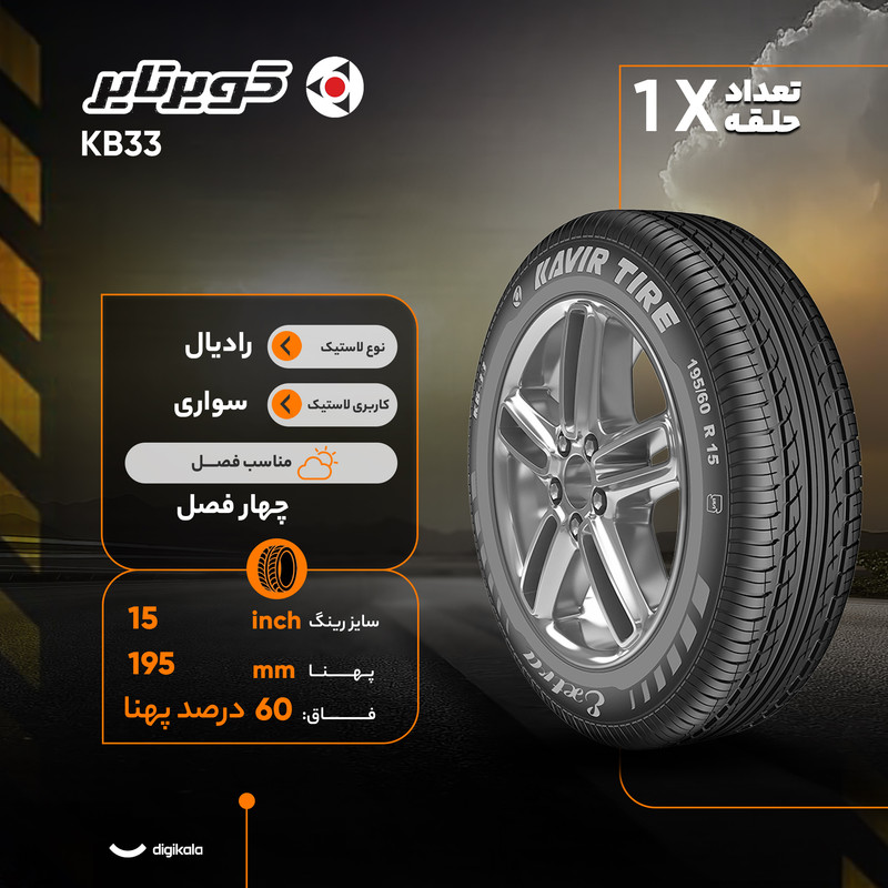 لاستیک خودرو کویر تایر مدل KB33 سایز 15 / 60 / 195 میلی‌متر تولید سال 2025 - 1 حلقه