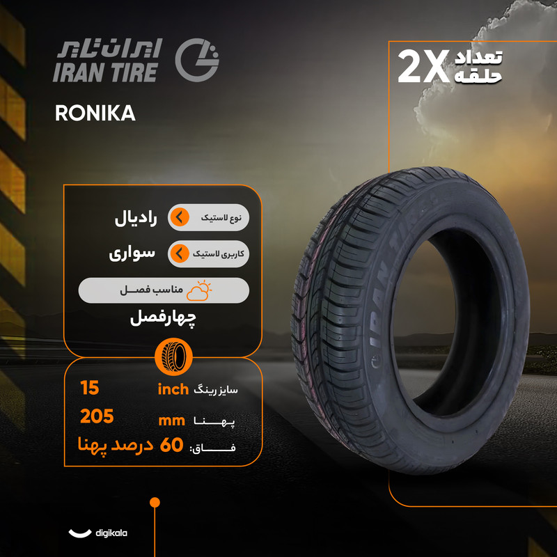 لاستیک خودرو ایران تایر مدل RONIKA سایز 15 / 60 / 205 میلی‌متر تولید سال 2025 - 2 حلقه